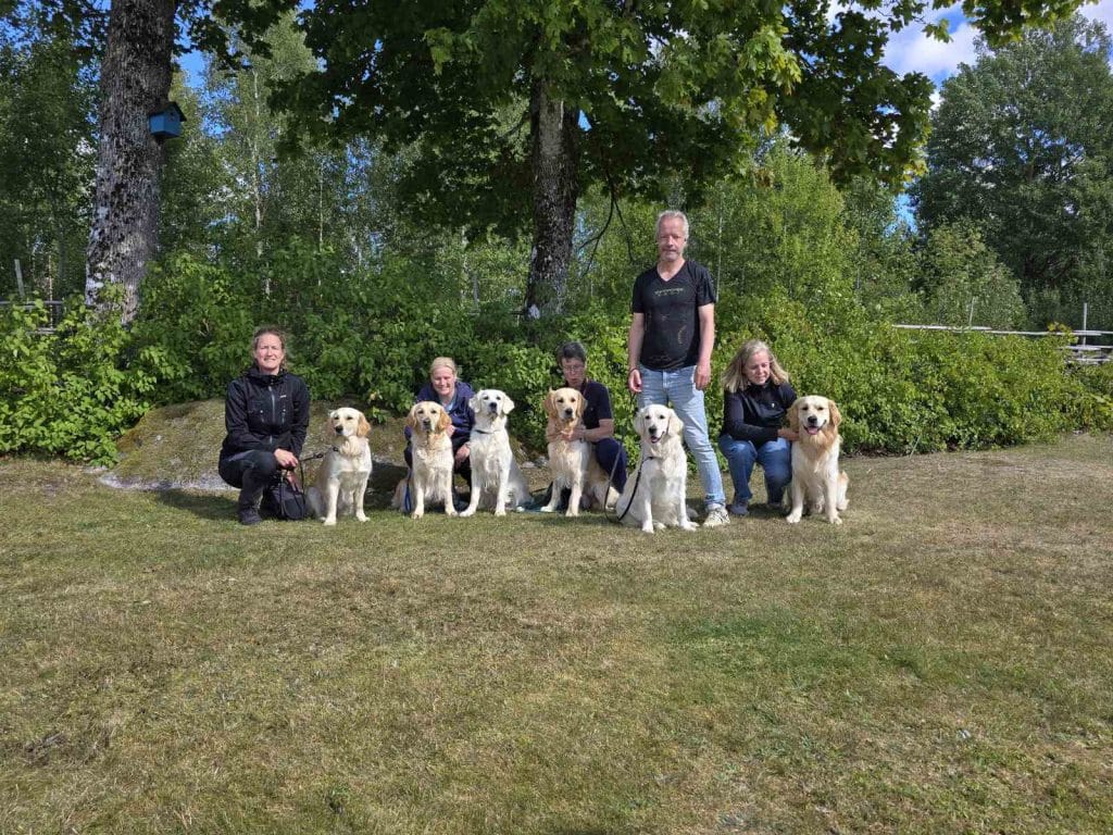 Dagen bestod av mycket bus och lek för hundarna och trevliga möten och samtal för människorna. Vi hade turen att Åsa Eriksson, en mycket duktig och erfaren handler, som utbildar sig till Open show-domare och har över 30 års erfarenhet av golden retrievers, kom till oss och gjorde en informell exteriörbeskrivning av hundarna. Åsa berättade även om hur en utställning går till, vad man ska tänka på och gav tips och råd till var och en av oss. Vi gick även igenom varför exteriören är viktig, varför man trimmar (det är inte bara för att hunden ska se snygg ut) och sambandet mellan exteriör, funktion och mentalitet.