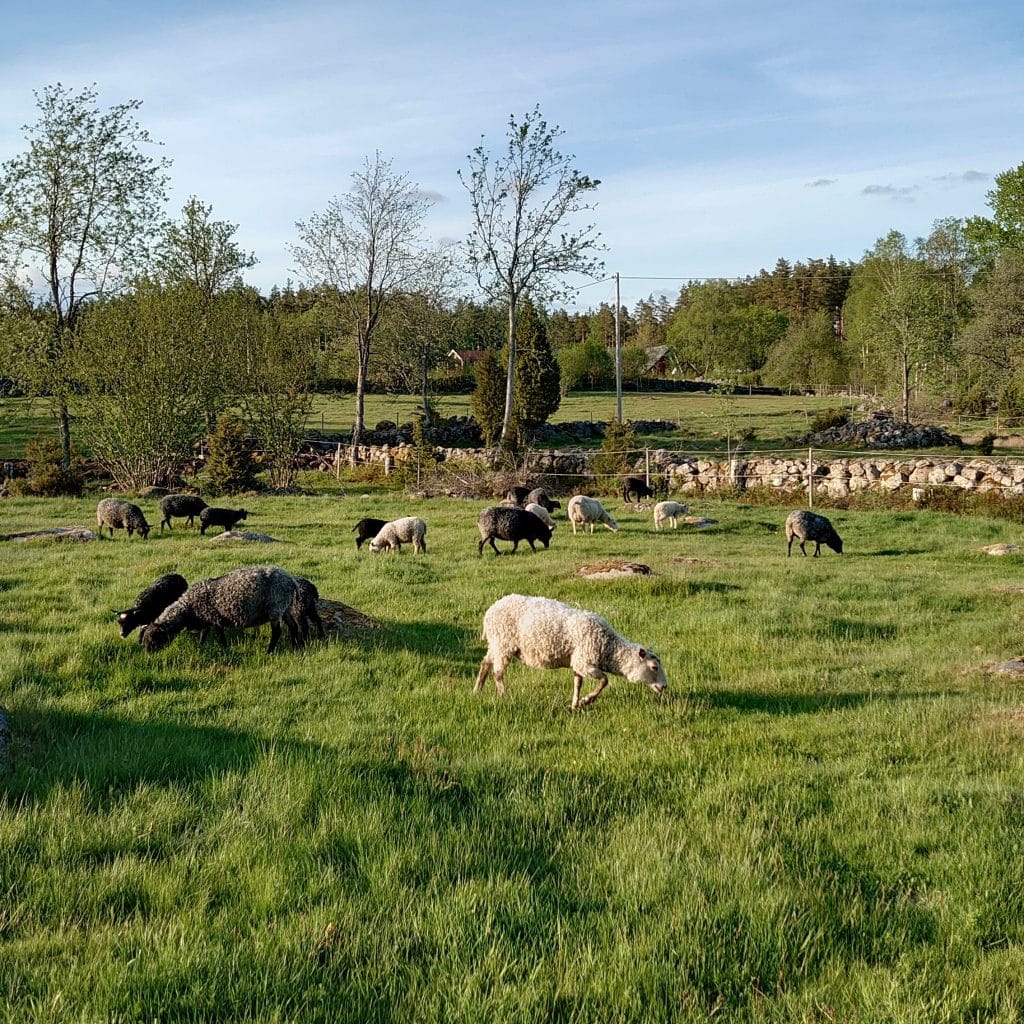 Vi har ambitionen att hålla betesmarkerna så parasitfria som möjligt. Av den anledningen är betesmarken indelad i olika sektioner för att underlätta växelbete med gårdens hästar men även för att hela säsongen kunna erbjuda våra får och lamm ett näringsrikt och parasitfritt bete.